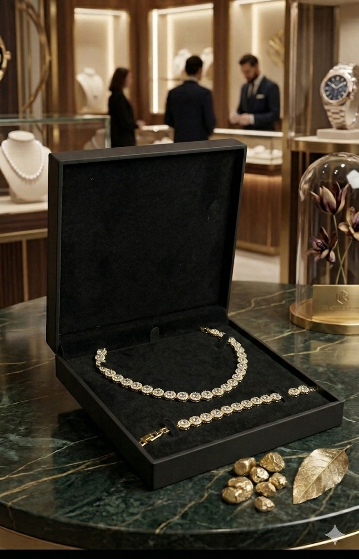 Finisaj: Placat cu Aur de 18K, oferind o culoare caldă, autentică și o rezistență sporită.