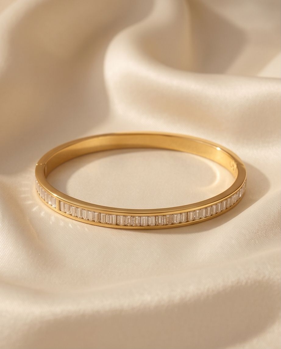 Adaugă o notă de lux încheieturii tale cu brățara Baguette Glow, ce prezintă cristale strălucitoare tăiate cu precizie, dispuse într-un design clasic și rafinat. ✨
