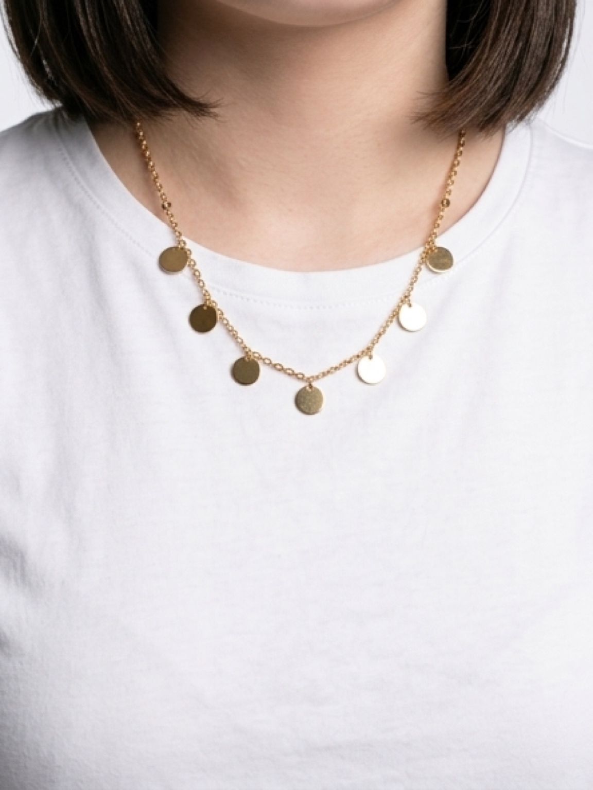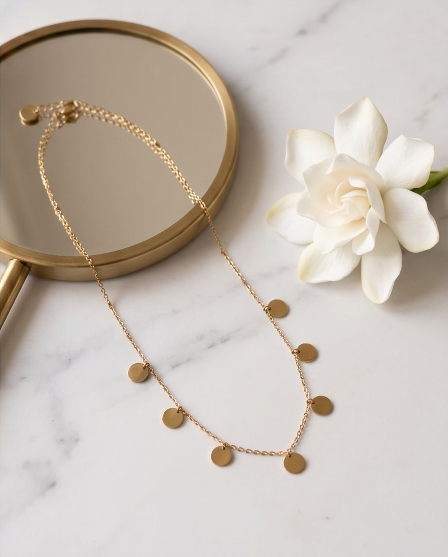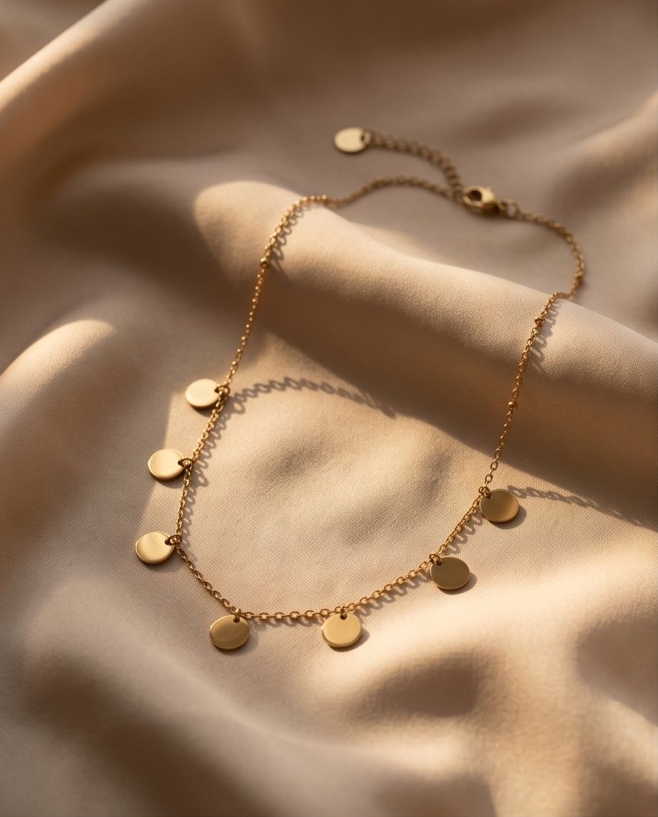 Design: Lănțișor fin decorat cu pandantive tip disc (bănuți).