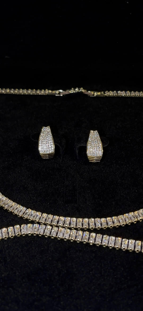 Fabricate din oțel inoxidabil de înaltă calitate, piesele sunt placate cu aur de 18k, oferindu-le o strălucire de durată și o rezistență sporită la uzură și coroziune. Designul minimalist, îmbogățit cu pietre strălucitoare, este perfect atât pentru purtarea zilnică, cât și pentru ocazii speciale.