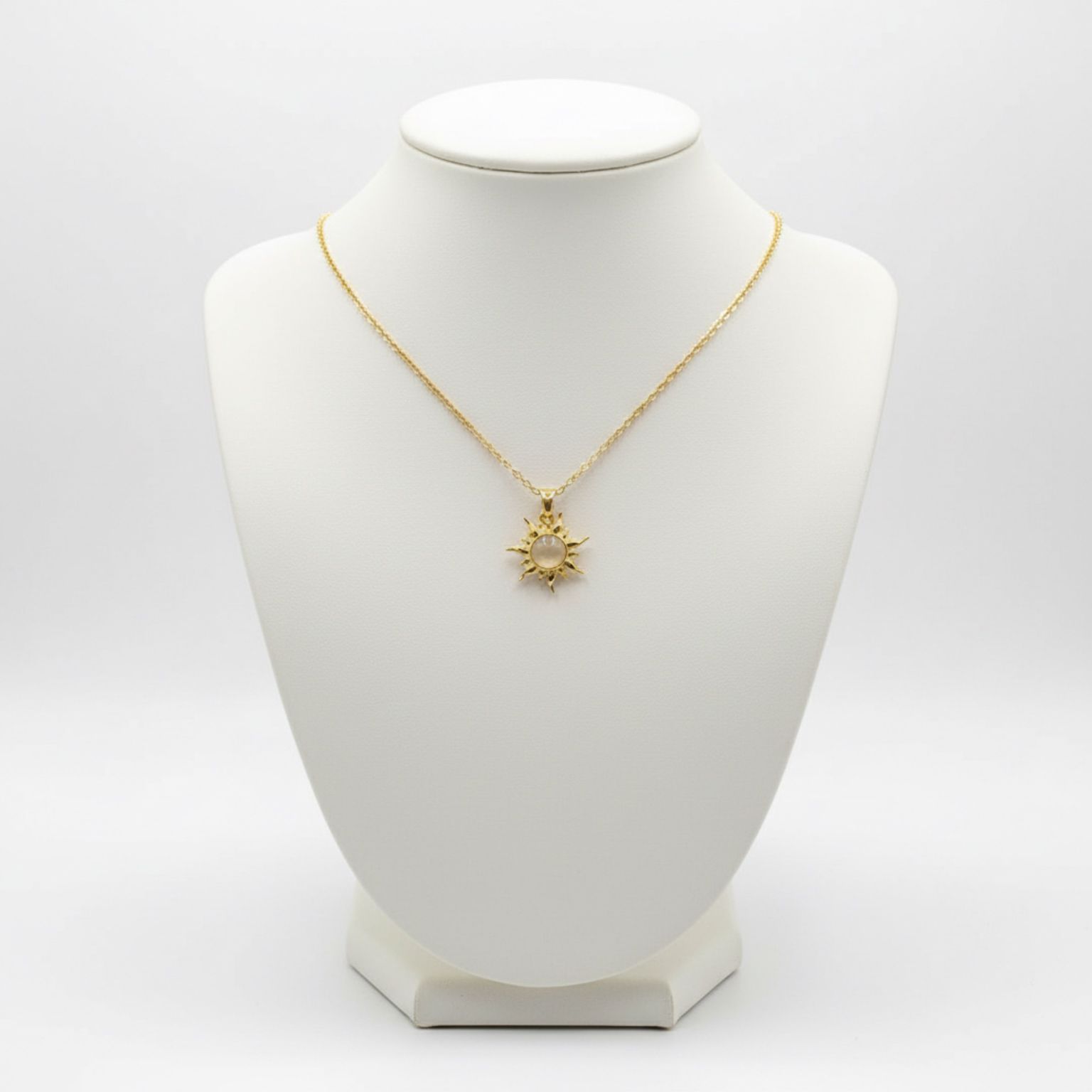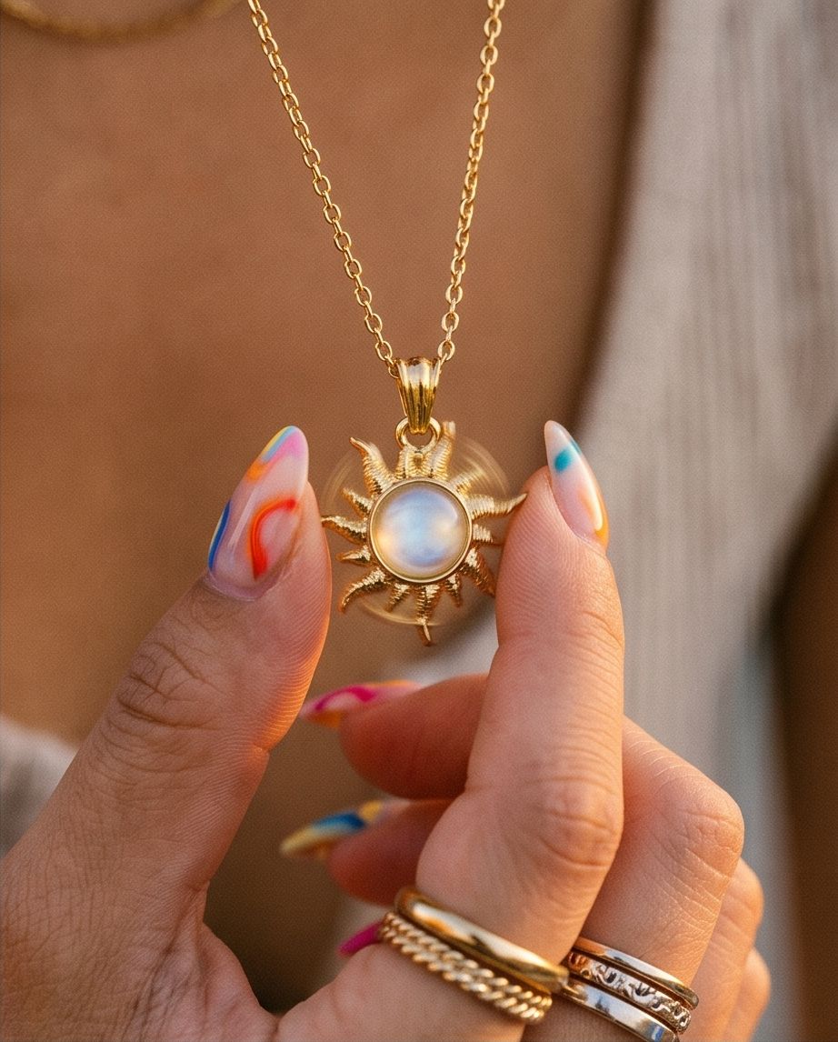Design: Motiv solar cu raze detaliate și centru mobil.